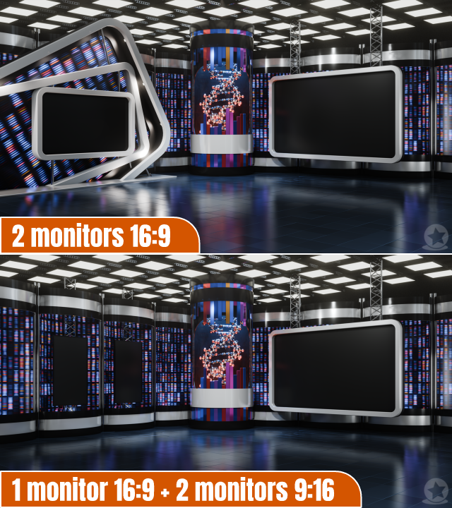 This studio offers 5 different camera angles, each with 6 customizable zoom positions for the virtual camera.